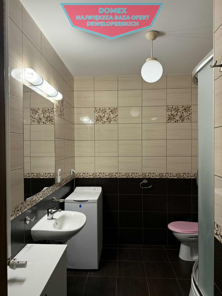 Mieszkanie jest częściowo umeblowane i wyposażone w pralkę oraz lodówkę. Z salonu prowadzi wyjście na balkon, idealny do wypoczynku.