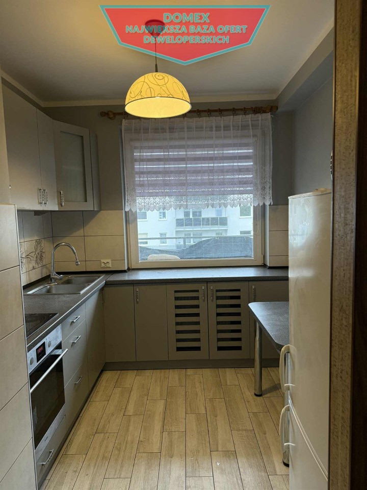 Mieszkanie jest częściowo umeblowane i wyposażone w pralkę oraz lodówkę. Z salonu prowadzi wyjście na balkon, idealny do wypoczynku.